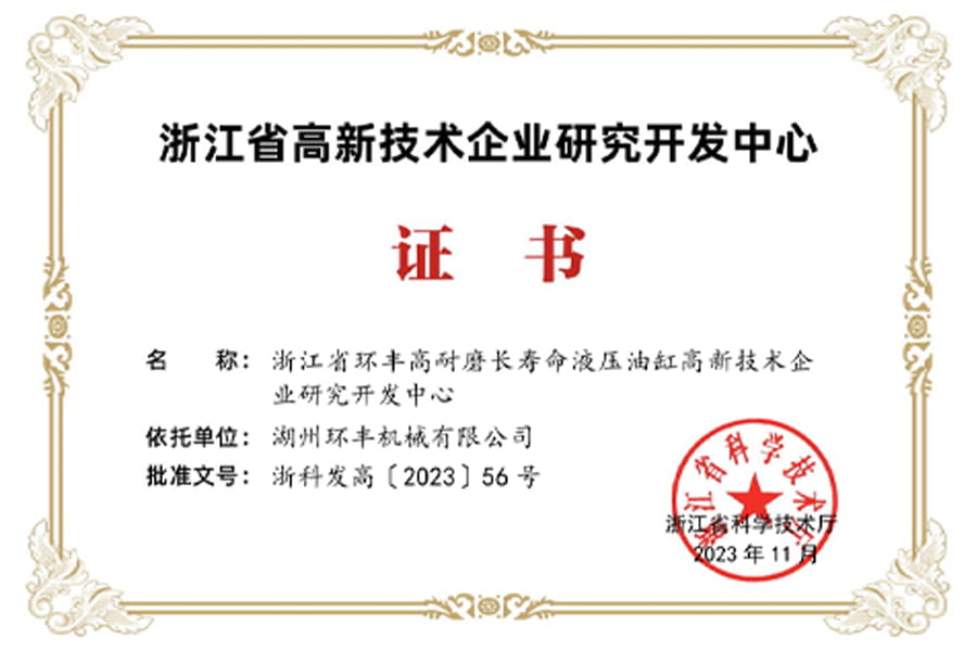 Chứng chỉ Trung tâm nghiên cứu và phát triển doanh nghiệp công nghệ cao của tỉnh Chiết Giang