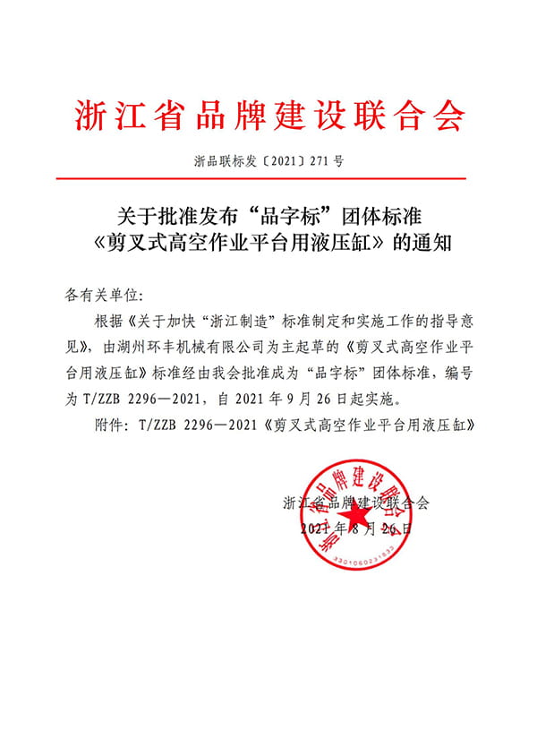Thông báo về việc phê duyệt xuất bản nhóm Pin Pinyibiao, tiêu chuẩn của xi lanh thủy lực cho các nền tảng làm việc trên không của bộ phận cắt kéo